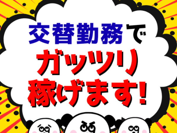| 就業時間 | 【3交替】 [1]6:15~14:30 [2]14:15~22:30 [3]22:15~翌6:30 ※実働7.5時間(休憩45分) 【勤務期間】即日~長期 【契約更新】3ヶ月ごと ※入社より2週間は法定試用期間となります。試用期間中の給与は変わりません。 |