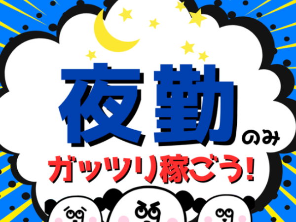 | 就業時間 | 【夜勤】17:30~翌2:30 ※実働7.83時間 ※休憩70分(10分+50分+10分) 【勤務期間】即日~長期 【契約更新】3ヶ月ごと ※入社より2週間は法定試用期間となります。試用期間中の給与は変わりません。 |